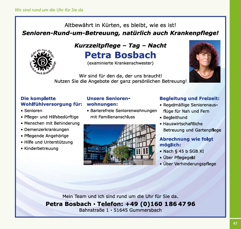 Älter werden in der Gemeinde Kürten 4. Wohnen im Alter 41 Wir sind rund um die Uhr für Sie da
